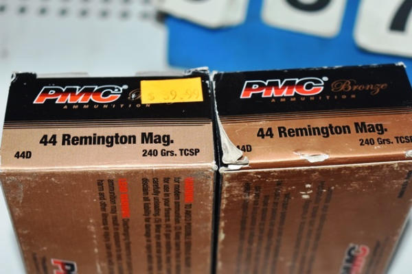 Lot includes 2 boxes of PMC Bronze 44 Remington Magnum 240 grain TCSP ammunition (50 round boxes)