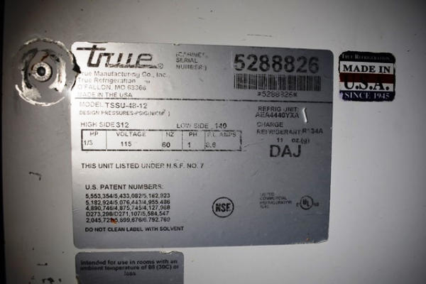 True 2 Door Sandwich Prep Unit 48" x 30"