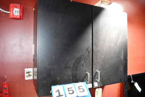 Wall Mounted 2 Door Wooden Cabinet with Contents