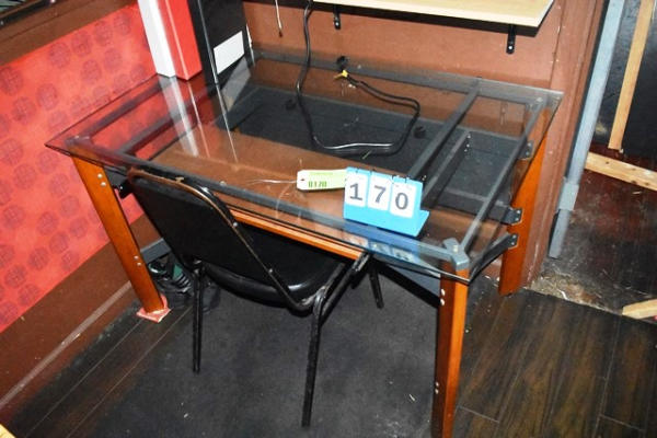 Wood and Metal Based Glass Top Table. 48" x 30"