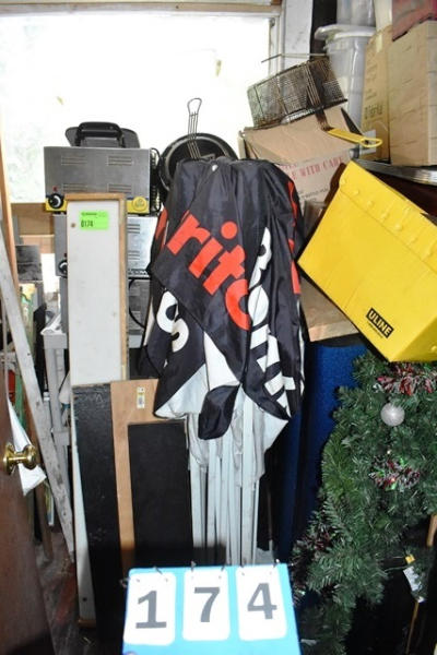 Partial Closet Lot Consisting of Assorted Decorations, Various Unknown Working Condition Kitchen Equipment, Signs, Etc.