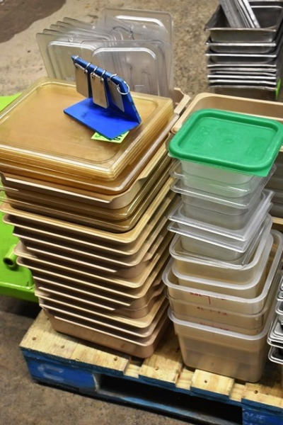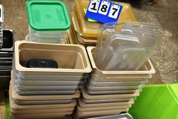 Various size plastic in-set pans and lids