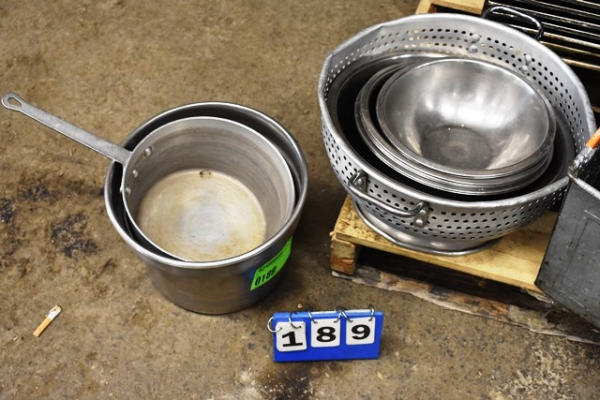 Pot, bowls, colander