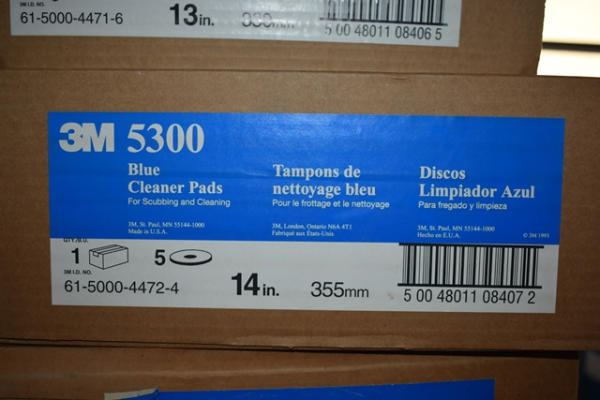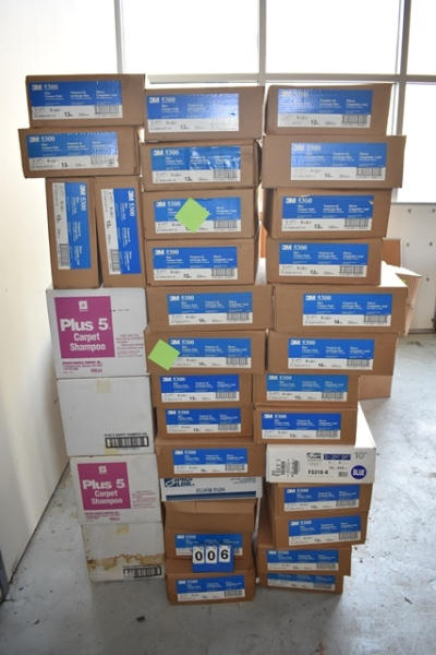 Large Lot of 3M Blue Cleaner Pads and Spartan Plus 5 Carpet Shampoo