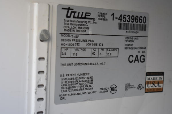 True Freezer. Model T-49F. 3/4HP, 115V, Single Phase