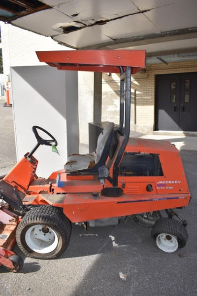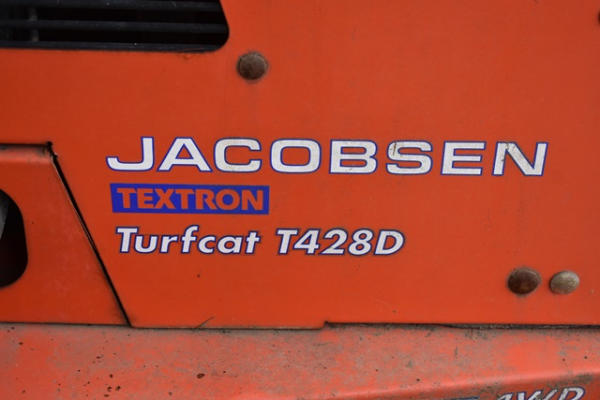 Jacobsen Textron Turf Cat. T428D, 4WD Mower, Will Need New Rear Tires. 1457.4 Hours. Jacobsen Mulcher Front End Approx. 60". Diesel. Running Condition Unknown, has not been ran in a couple of years but ran when parked.