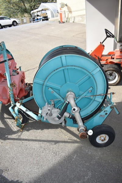 Microrain Large Portable Hose Reels with Manually Controlled PTO to Dispense Water. Model MR-40. Tow Behind, Motor Powered.