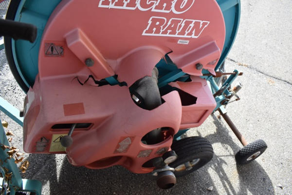 Microrain Large Portable Hose Reels with Manually Controlled PTO to Dispense Water. Model MR-40. Tow Behind, Motor Powered.