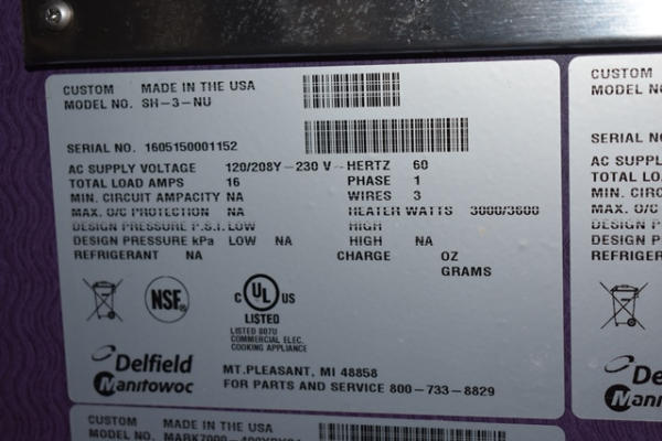 Delfield Model SH-3-NU Single Phase, 120V, Steam Table. 1/2 Heated, 1/2 Chilled (For Both Hot/Cold Food)