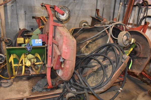 Large Lot of Lawn Mower/Snow Blower Parts. 1 Snow Blower, 3 Mower Decks. John Deere Snow Blower, John Deere 72" PTO Driven Mower Deck