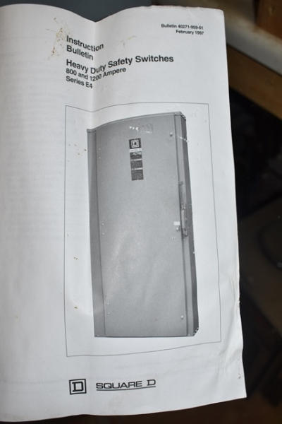 Square D Heavy Duty Safety Switch Model H327N, 800AMP 240V, Enclosure Style. Approx. 14" x 36" x 69"H