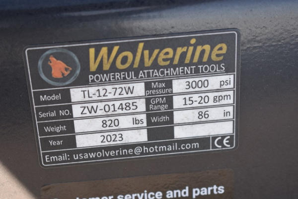 Wolverine 72" Quick Detach Hydraulic Covered Tiller (Units are not checked for fluids, nor are they provided by the auction company)