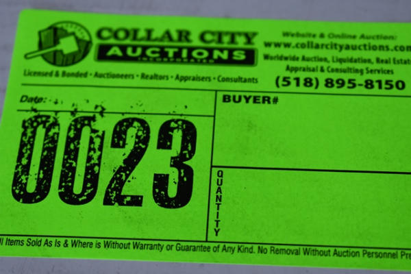 TAX EXEMPT PURCHASERS MUST complete a New York State ST-120 or ST-125 Form Available on the online auction and return to our office via fax: 518-895-8152 or email: service@collarcityauctions.com PRIOR TO THE AUCTION ENDING or be subject to applicable sales taxes. We will not make any exceptions. Send the form as required or pay the sales tax. Please do not send in AFTER AUCTION CLOSES and expect us to revise our completed records because you did not read this when registering, during bidding, in the lot description and now. We will, however, be happy to revise your invoice after the deadline for a $75.00 fee and will make revision once the revision fee has been received in full.