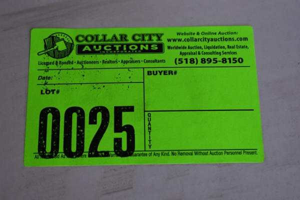 Applicable sales tax will be charged on all items. All sales are final. No refunds, credits or exchanges will be honored or issued. Item sold "AS-IS" and "WHERE-IS" with no warranty express or implied verbal or written. Solely Bidder as Purchaser responsibility for inspecting items before placing bids. All descriptions are provided for informational purposes only and are believed to be accurate, but in no manner are to be construed as guaranteed as completely accurate. OPERATIONAL CONDITION OF ANY ITEM IS UNKNOWN, IT IS RECOMMENDED THAT YOU ATTEND THE INSPECTION TO THOROUGHLY INSPECT ALL ITEMS PRIOR TO PLACING ANY BIDS. AS STATED HEREIN, BIDS ARE BINDING ONCE PLACED AND MAY NOT BE WITHDRAWN, MODIFIED OR NEGOTIATED DURING OR POST AUCTION. DONT BID UNLESS YOU PLAN TO PAY. SALES ARE NOT SUBJECT TO POST AUCTION INSPECTION OR TEST DRIVE.
