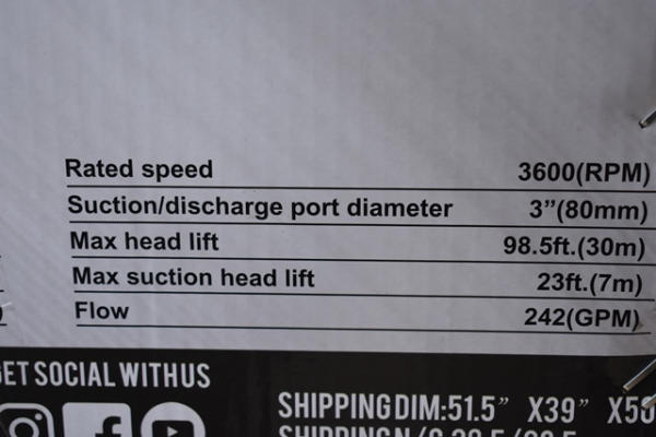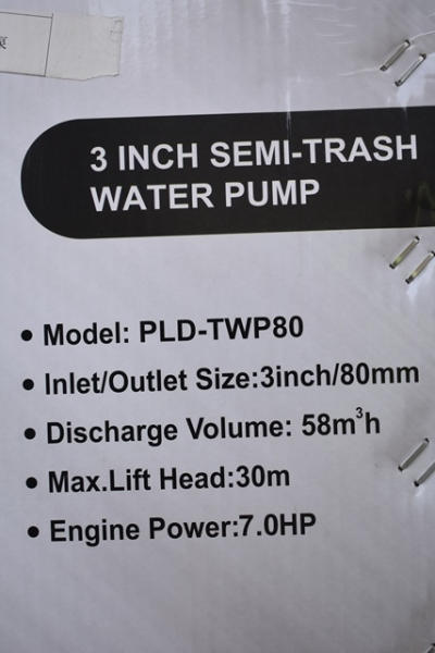 Paladin Industrial 3" Semi-Trash Water Pump Model PLD-TWP80 7HP, 242 Gal. Per Min Max. Flow (New In Box)