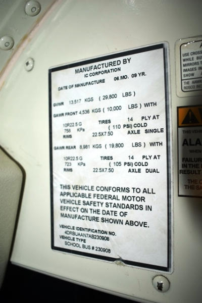 2010 IC Co. CE School Bus, VIN: 4DRBUAAN7AB230908. Runs & Moves. 6 Cylinder Diesel Motor, Mileage: 144,258 +/- Miles, GVWR: 29,800 +/- lbs. Adult Seating: 45, Child Seating: 66. Transferable Paperwork Available at Removal. According to the auction, if a vehicle was "Run & Move" this means the vehicle: 1) Started under its own power or with the use of external jump box, 2) Was put into gear, and 3) Moved forward. This designation is no representation, guarantee, or warranty that the vehicle is roadworthy or will be able to start, be put into gear, or capable of moving forward at the time of sale.