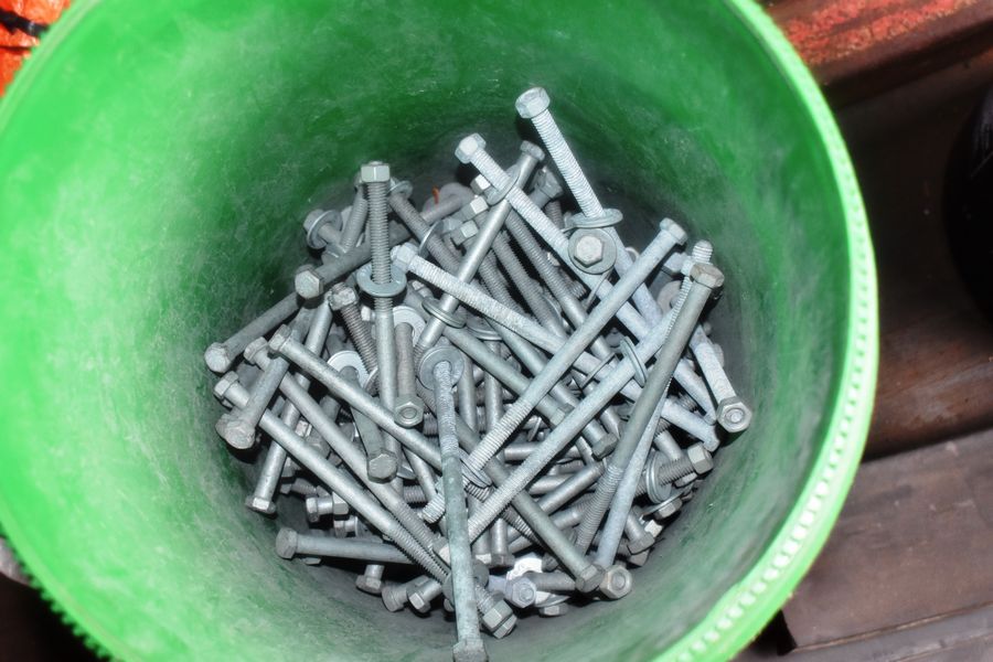 Lot Consisting of Small Pieces of Angle, Load Bar, Plastic Bins, Etc.