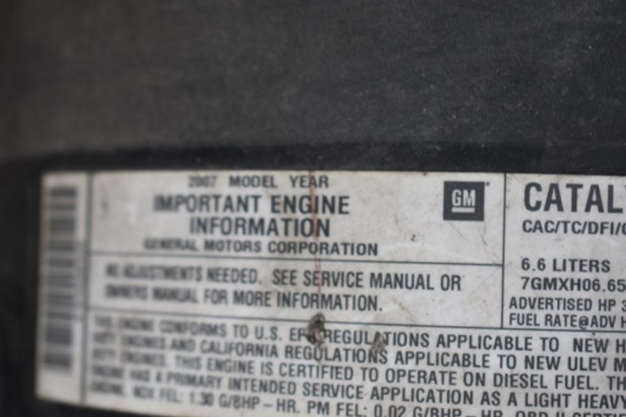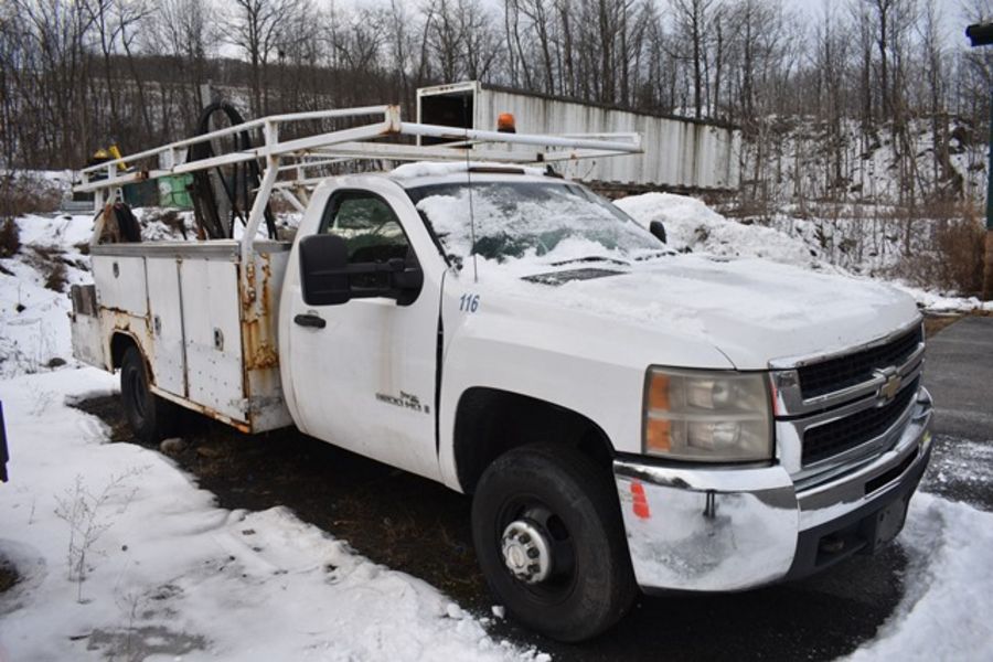 2007 Chevy 3500 Pickup. VIN# 1GBJC34657E552042 Utility Body, 6.6 Duramax Allison Auto Transmission, Hydraulic Pump With Driver, Approx. 205,258+/- Miles. Starts, Runs and Moves. Transferable Paperwork Available at Removal.