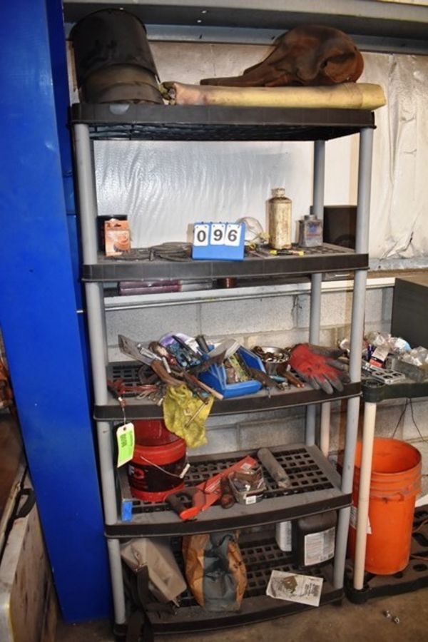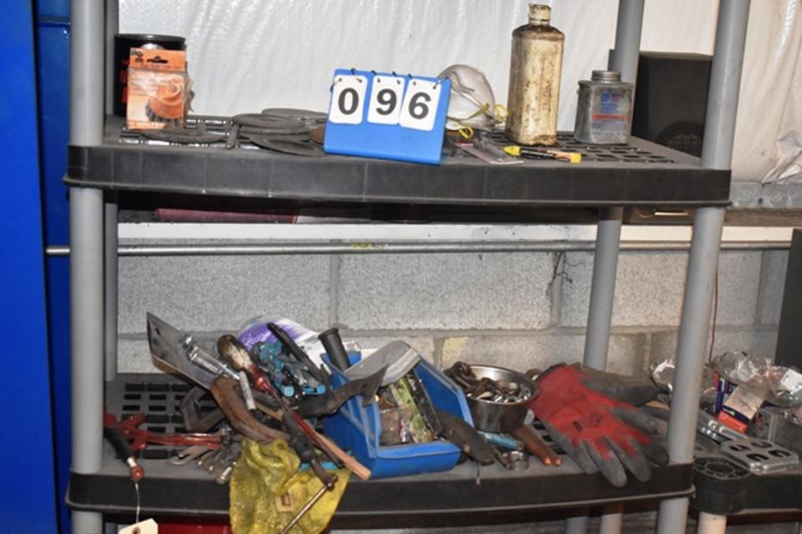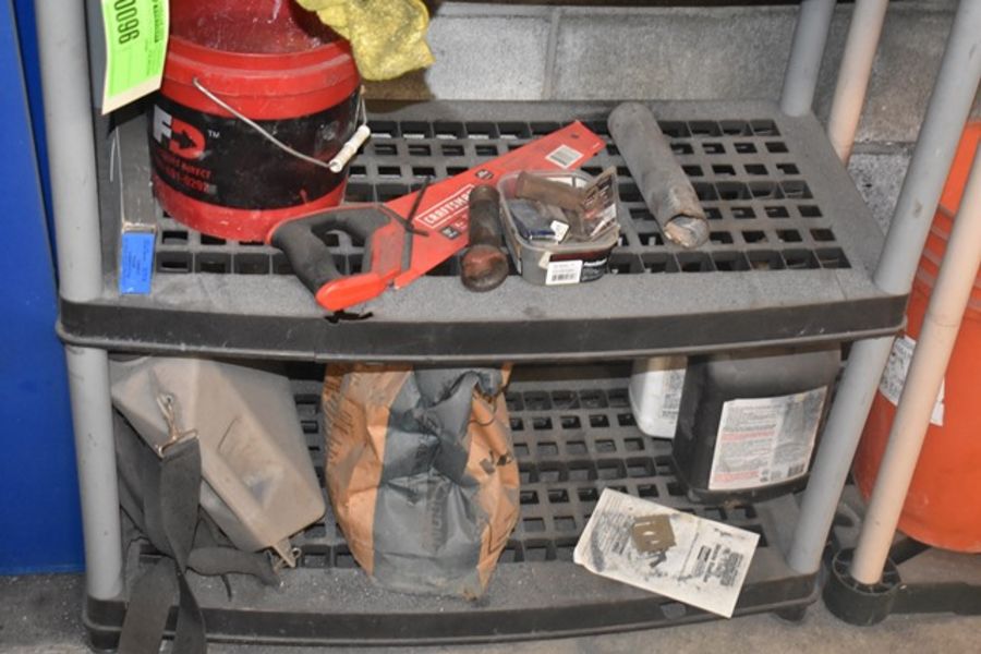 Shelf Unit and Contents 36" Shelf, Consisting of Tools, Grinding Disc, Gloves, Saw, Etc.