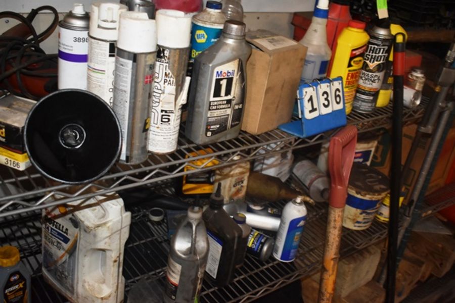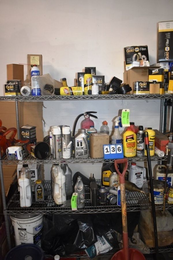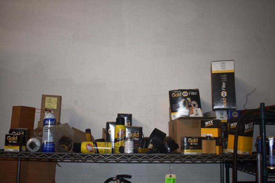 Contents of Entire Rack Consisting of Automotive Filters, Oils, Marker Paint, Etc.