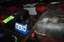 Shelf Lot Consisting of Toolboxes, Grease, Nuts, Bolts