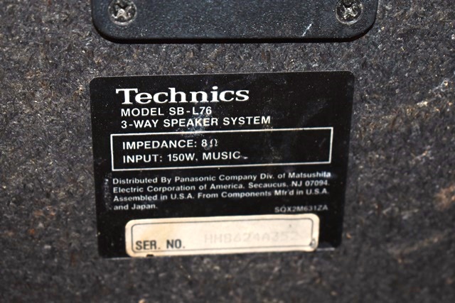Lot of 2 Technics Model SP-L76 3 Way Speaker Systems