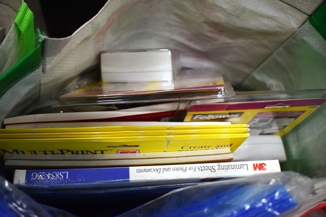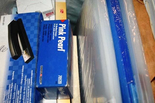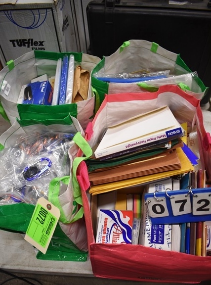 Lot of Office Goods Including Staplers, Erasers, Paper Goods, Printer Paper, Rubber Bands, Markers, Etc.