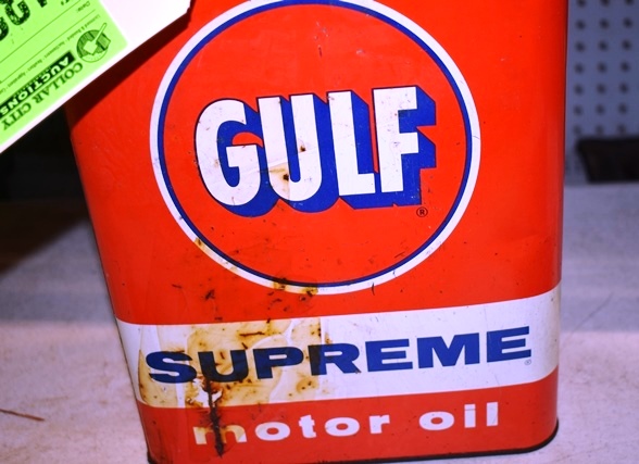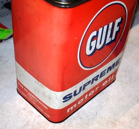 Singer Household Oil Can and Gulf Supreme Motor Oil 2 Gallon Oil Can