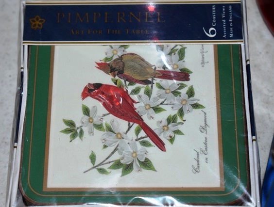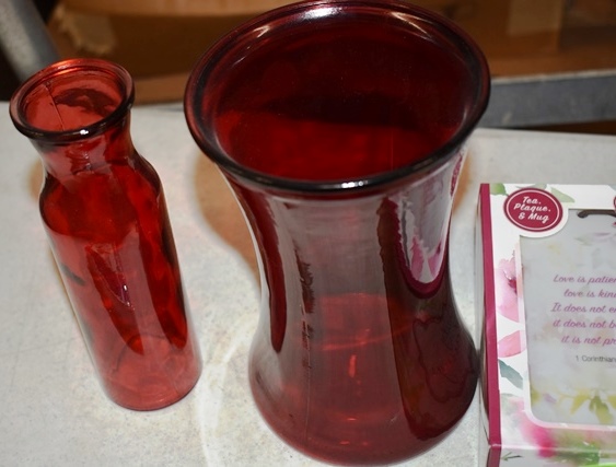 2 Red Glass Vases, Pimpernel Coasters and Daily Blessings Teacup