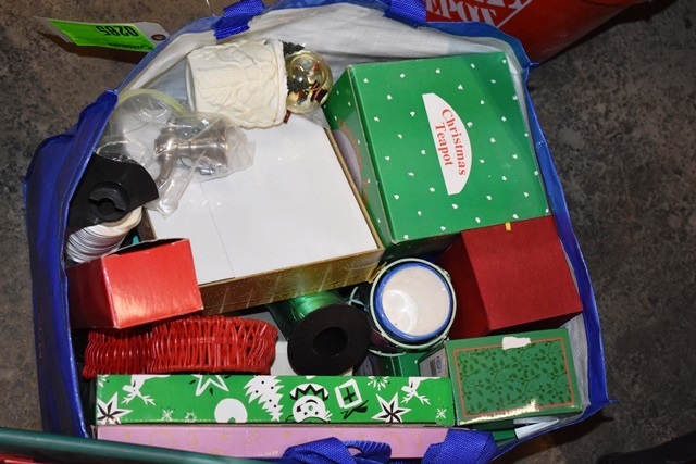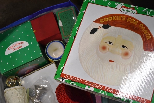 Lot of Holiday Decorations, Cookie Dishes, Teapots, Gift Bags