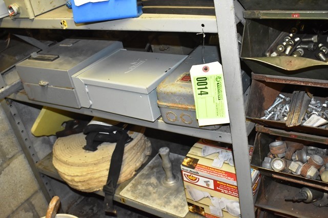 Shelf Lot Including Rack Consisting of Assorted Electrical Boxes, Assorted Hardware