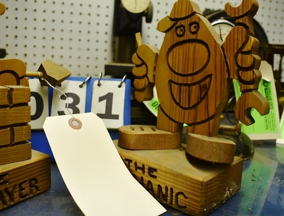 2-Wooden Bricklayer and The Mechanic Figurines