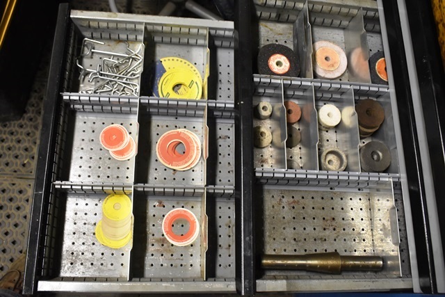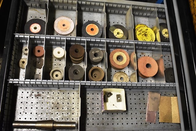 #71 – Cincinnati Universal Grinder with Attachments 240V, 3-Phase, Includes Contents of Many Drawers of Tooling, Arbors, NMTB 50 Collet, Bits, Grinding Wheels, Etc. Onsite Exclusive Rigger will disassemble and load on your trailer for the following flat fee: $100.00. No other rigger is permitted onsite.