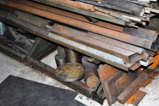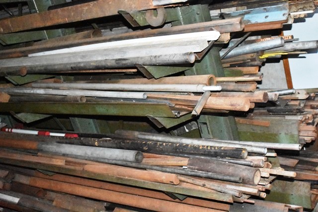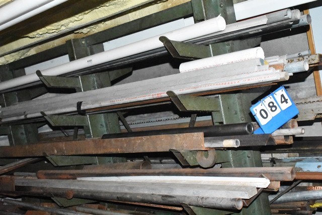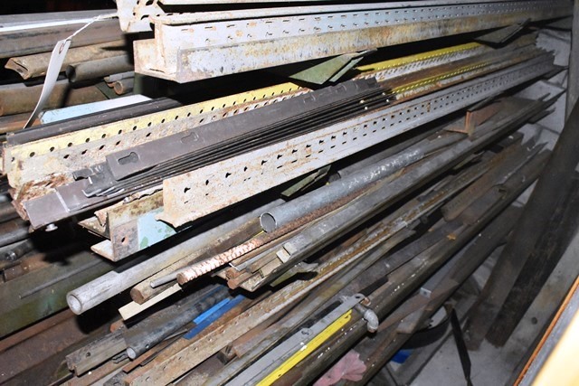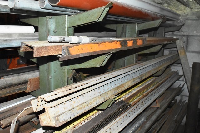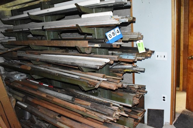 Material Rack, Approx. 6'H, with Contents Consisting of Angles, C-Channel, Round Stock, Mostly Steel, Some Aluminum, Etc.