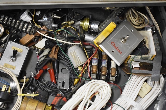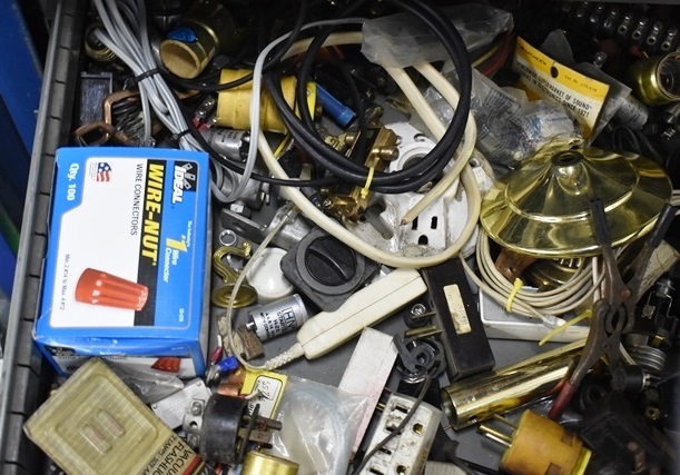 Drawer Lot Consisting of Electrical Wires, Outlet Ends, Lamp Parts, Etc. (DRAWER NOT INCLUDED)