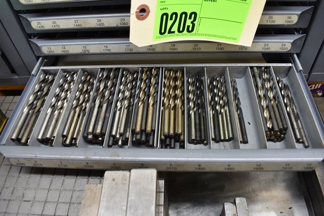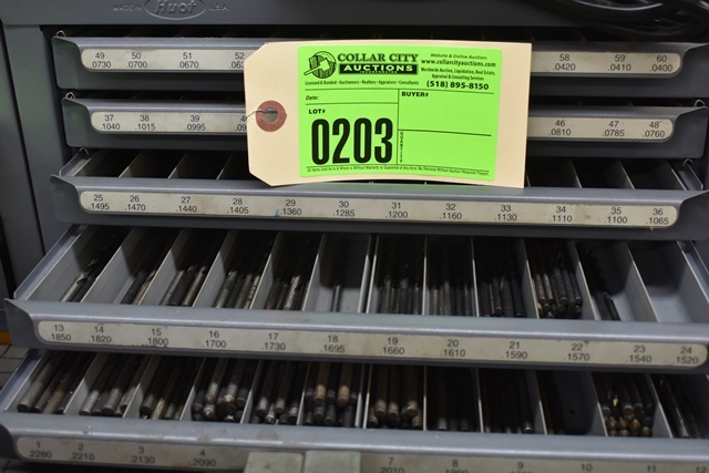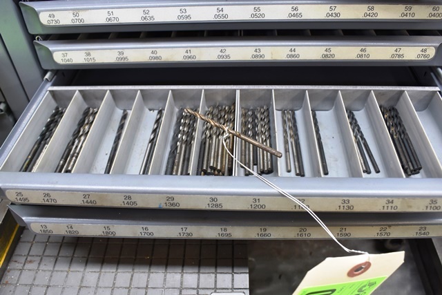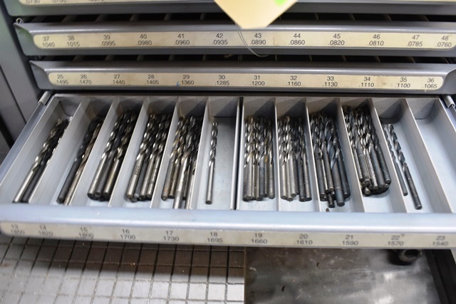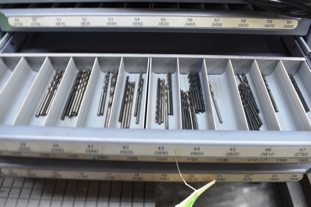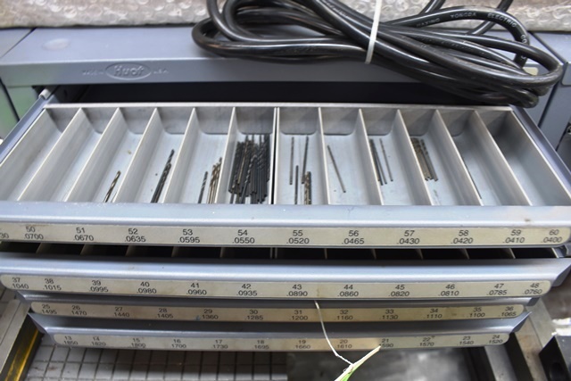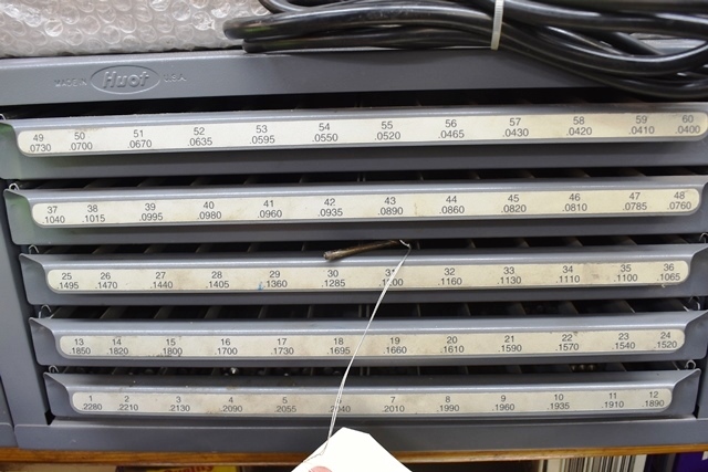 Drill Bit Organizer Cabinet with Fractional Drill Bits, Wire Gauge