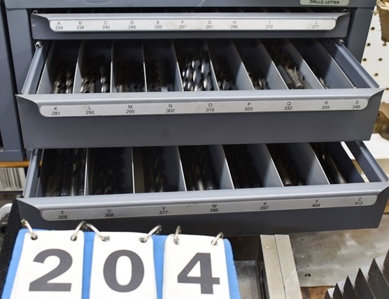 Drill Bit Organizer Cabinet with Fractional Drill Bits, Letter Gauge