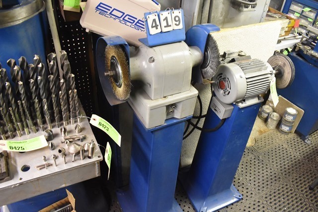 Pedestal Grinder 110V with 8" Wheel. Onsite Exclusive Rigger will disassemble and load on your trailer for the following flat fee: $50.00. No other rigger is permitted onsite.