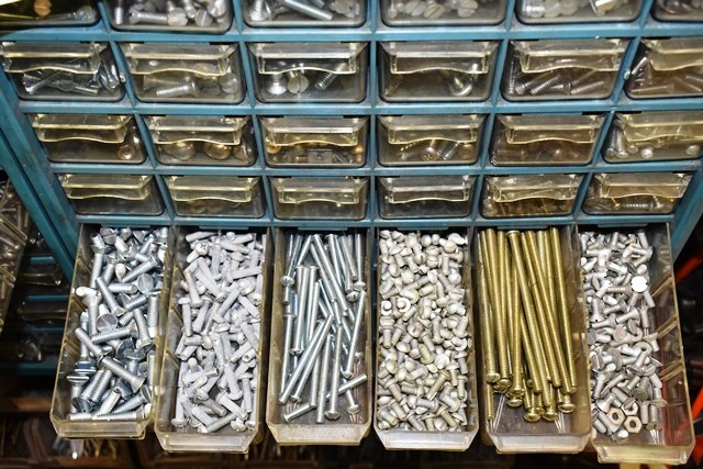 4 Nut and Bolt Organizers with Screws, Electrical Connectors, Cotter Pins, Washers, Etc.