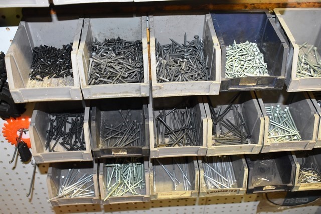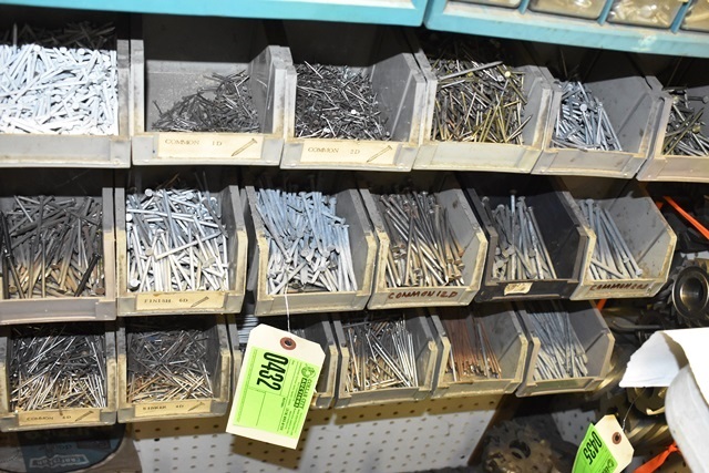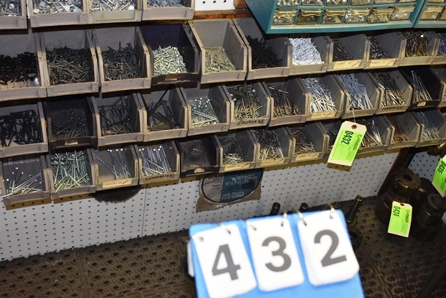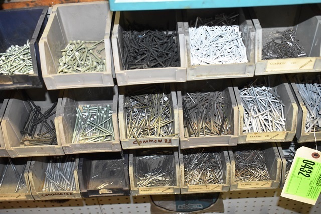 Large Lot of Bins Consisting of Sheetrock Screws, Nails