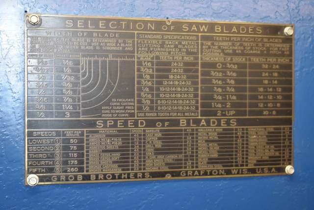 Grob Brothers 18" Band Saw, Blade Welder, Additional Clamps and Fixturing, 240V, 3-Phase. Onsite Exclusive Rigger will disassemble and load on your trailer for the following flat fee: $100.00. No other rigger is permitted onsite.