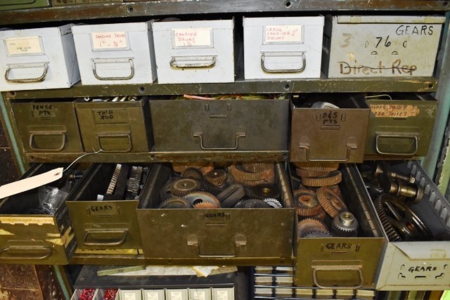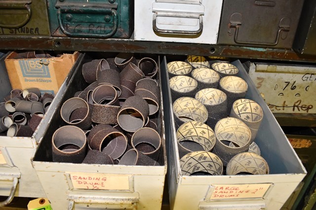 Drawer Contents Consisting of Gears, Sanding Drums, Assorted Parts, Etc. (DRAWERS INCLUDED)