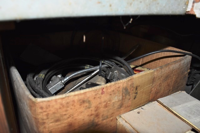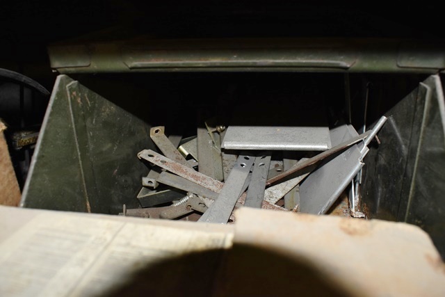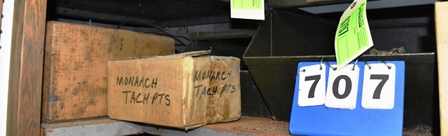 Box of Monarch Parts, Misc. Steel Brackets, Retractable Light Reel