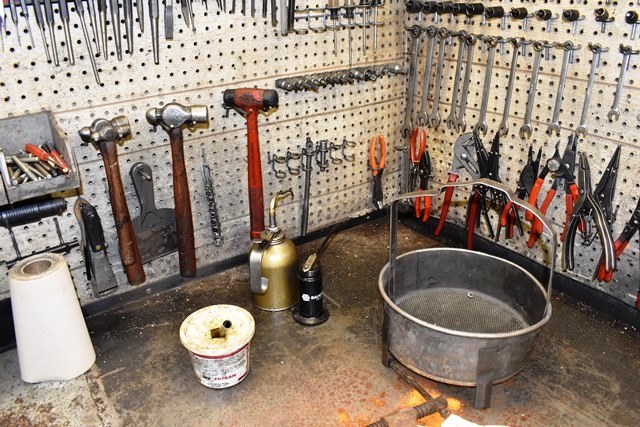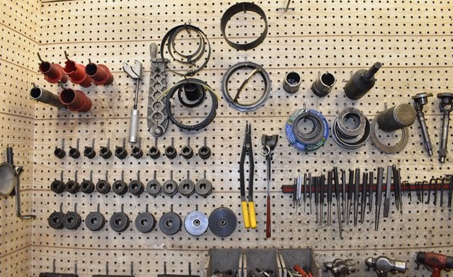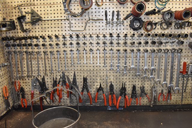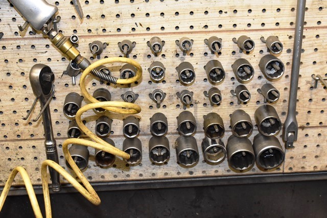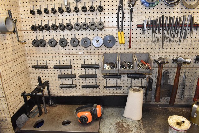 Complete Transmission Rebuilding Workbench Includes Snap-On Wrenches (Metric and SAE), Matco and Snap-On Pliers, Specialty Tools for Disassembling and Reassembling Transmissions, Transmission Rotator, Solvent Tank, Spring Compressor, Seal Setting Tools, Seals, Specialty Tools, Punches, Nuts, Bolts, Bearings, Parts