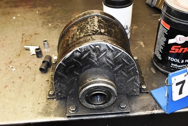 #719 – Complete Transmission Rebuilding Workbench Includes Snap-On Wrenches (Metric and SAE), Matco and Snap-On Pliers, Specialty Tools for Disassembling and Reassembling Transmissions, Transmission Rotator, Solvent Tank, Spring Compressor, Seal Setting Tools, Seals, Specialty Tools, Punches, Nuts, Bolts, Bearings, Parts