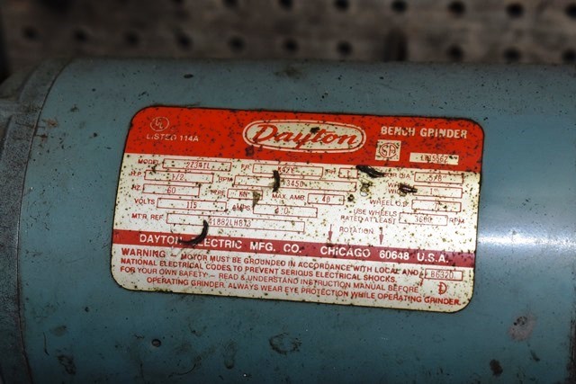 Dayton Bench Grinder on Pedestal 1/2HP, 120V, 7" Wheels. Onsite Exclusive Rigger will disassemble and load on your trailer for the following flat fee: $50.00. No other rigger is permitted onsite.