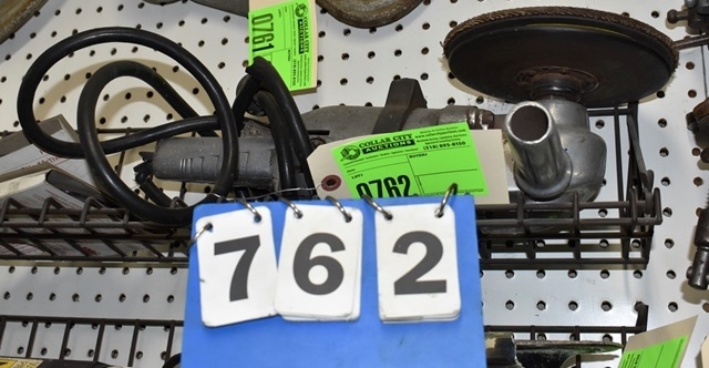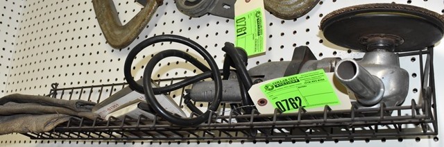 Shelf Lot Consisting of 7 1/2" Grinder, Welding Gloves, Etc.