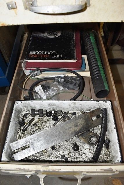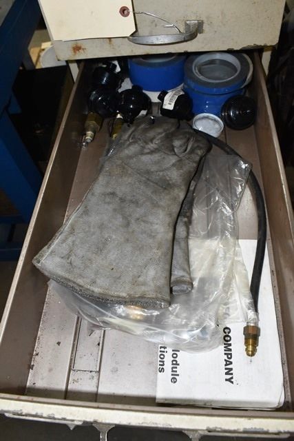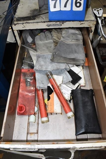 File Cabinet with Contents Consisting of Misc. Wrenches, Gloves, Tungsten Welding Electrodes, Replacement Tips, Etc.