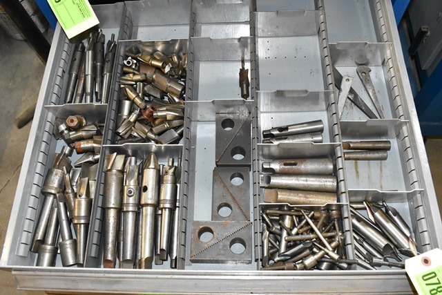 Drawer Lot Consisting of Morse Taper Adapters, Hold Downs, End Mills