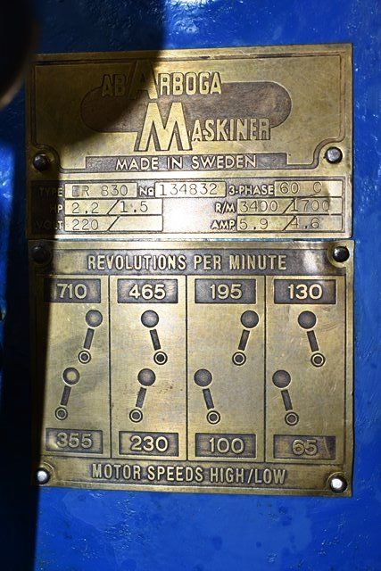 Arboga Radial Arm Drill Press Made in Sweden 3-Phase, 240V, 2.2 or 1 1/2HP, 3400RPM or 1700 RPM. Onsite Exclusive Rigger will disassemble and load on your trailer for the following flat fee: $200.00. No other rigger is permitted onsite.